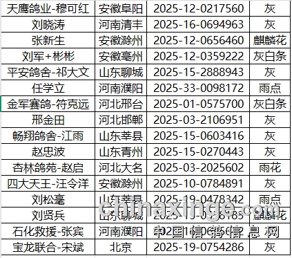 提示:如果此页面是训放清单,要想快速查询鸽环号,请按