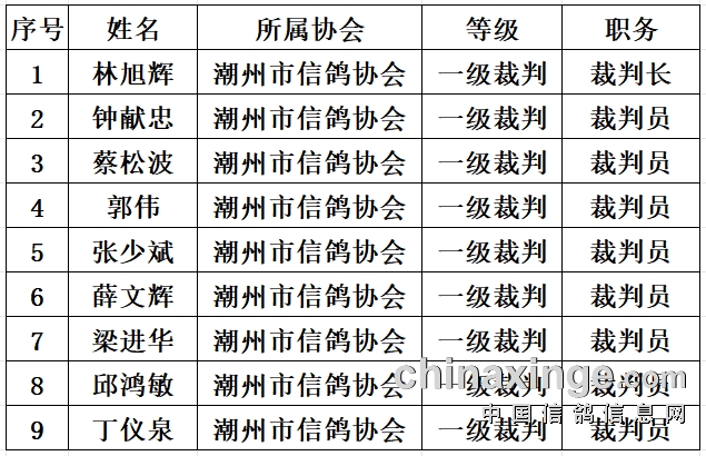 以下为资格站裁判人员名单: