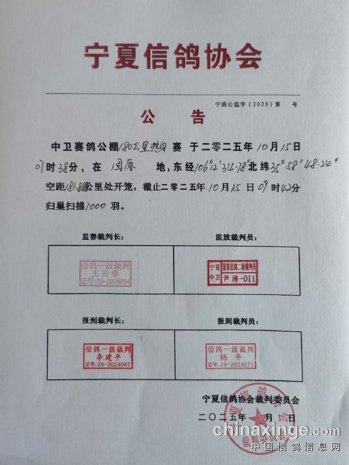 宁夏中卫赛鸽公棚2025年精英赛规程及报名通道