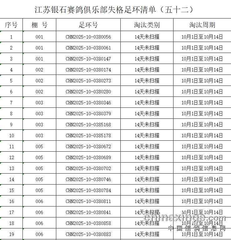 2025年江苏银石赛鸽俱乐部失格足环清单 (五十二)