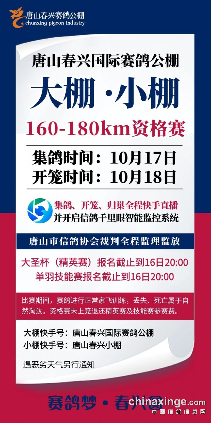 春兴国际(小棚)资格赛开笼信息及数据直播链接