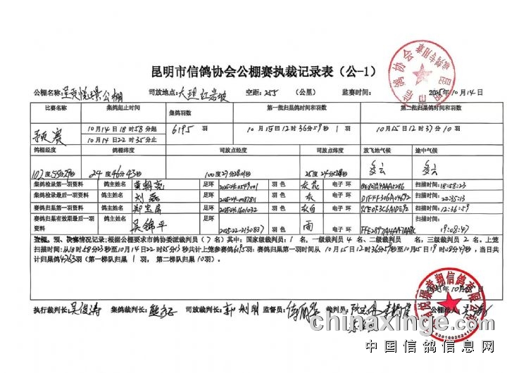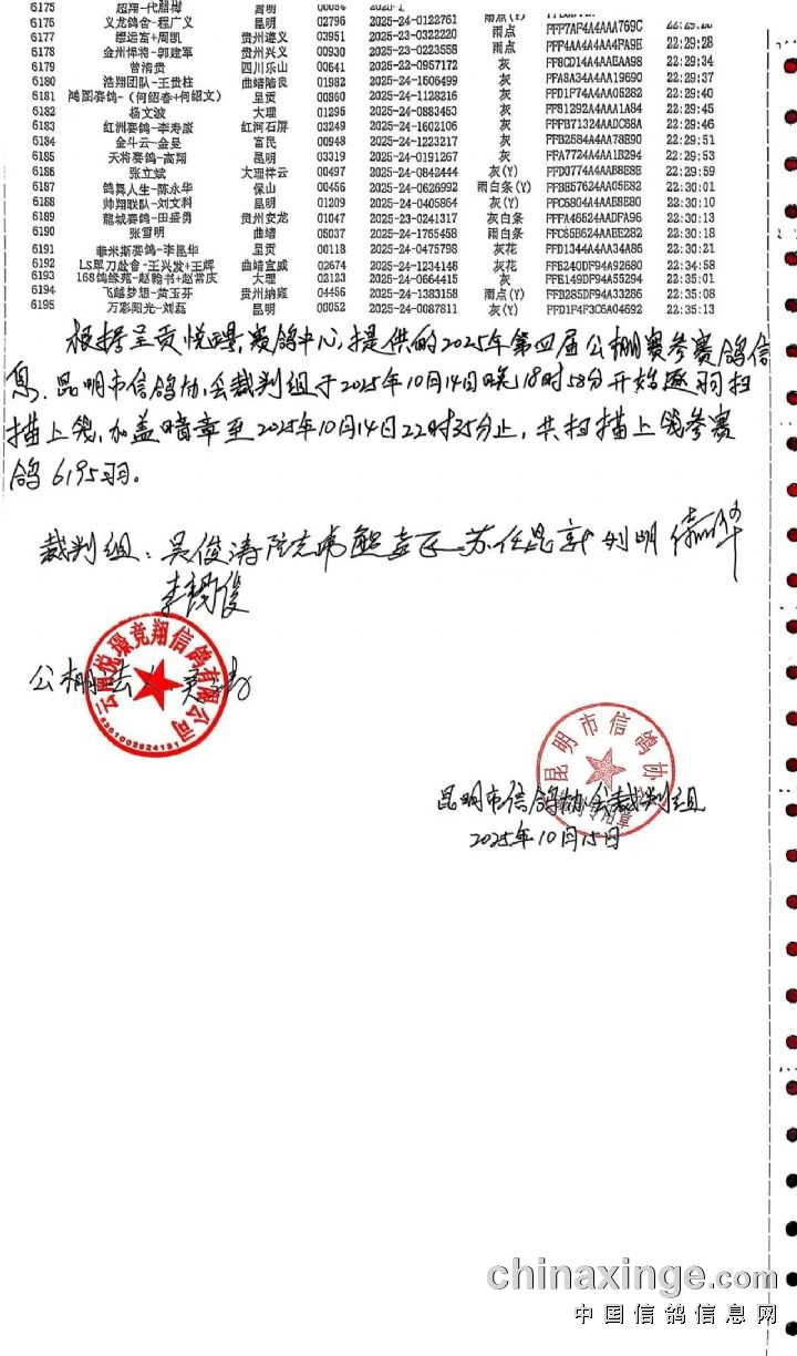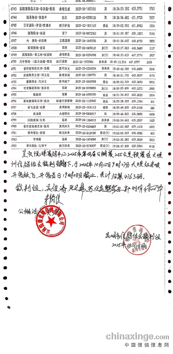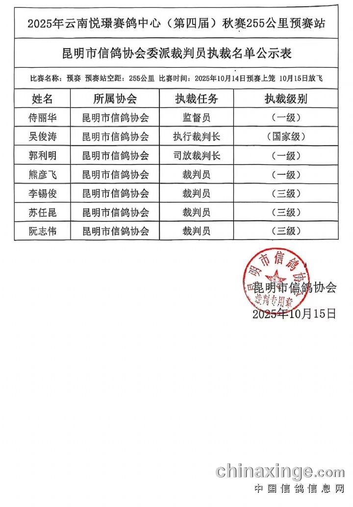 2025年昆明悦璟赛鸽中心预赛执裁文件公示
