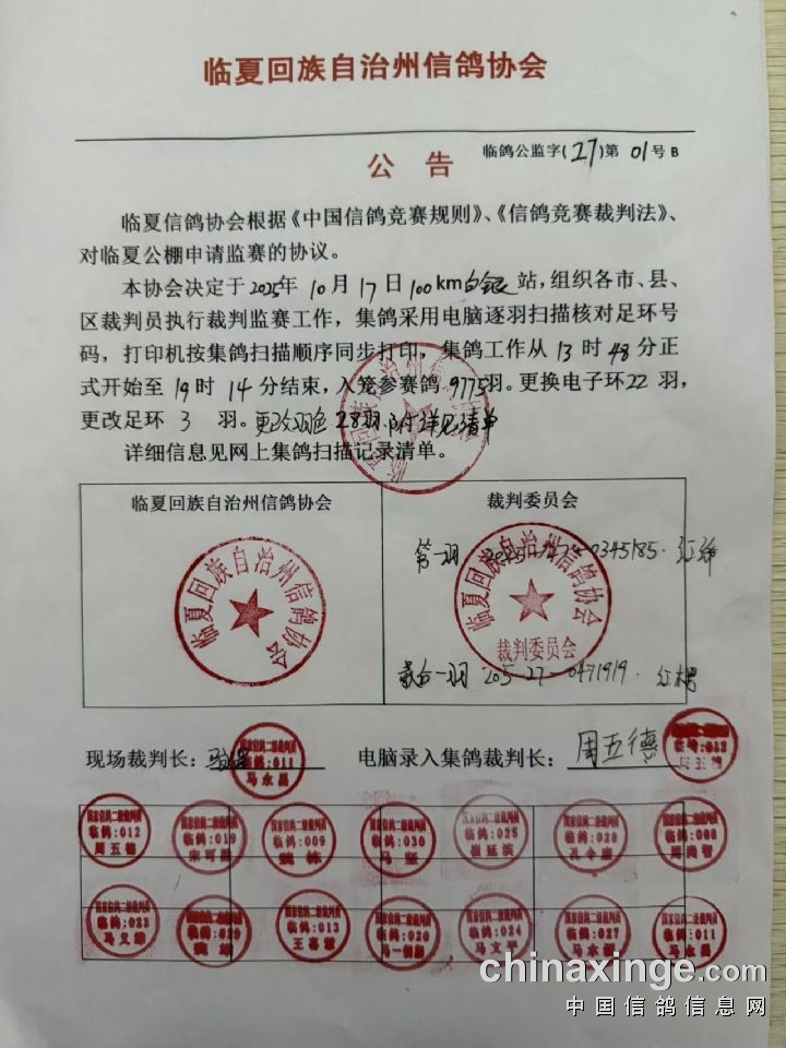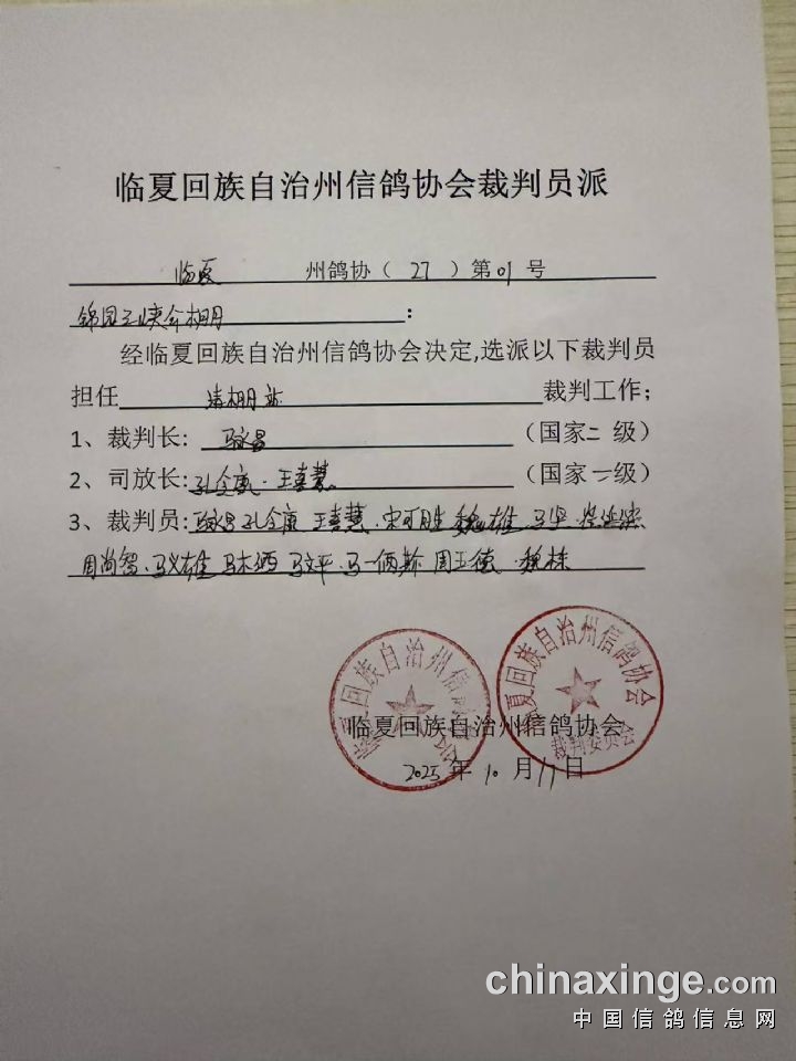 临夏州信鸽协会监放证明单