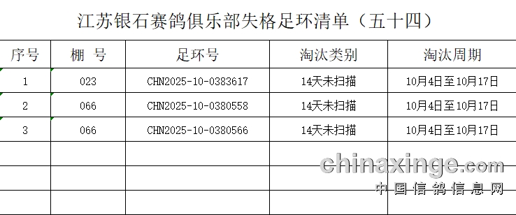 2025年江苏银石赛鸽俱乐部失格足环清单 (五十四)