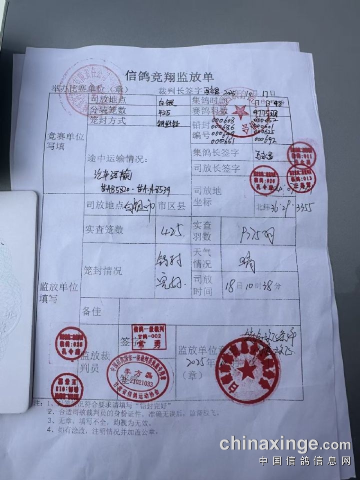 临夏州信鸽协会监放证明单
