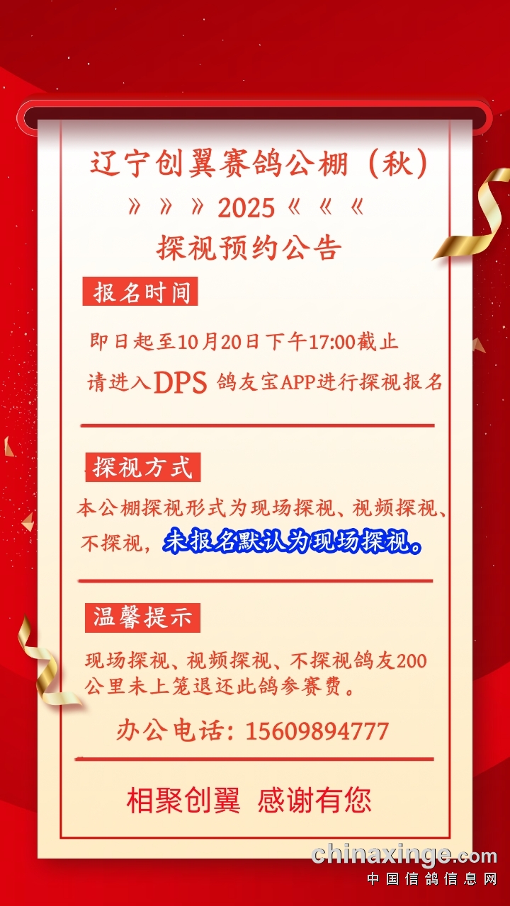 辽宁创翼赛鸽公棚(秋)探视预约公告!