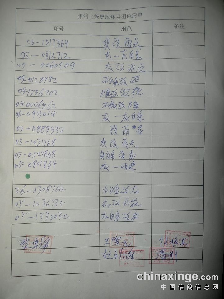 东信公棚300公里资格赛集鸽上笼更改羽色名单公示