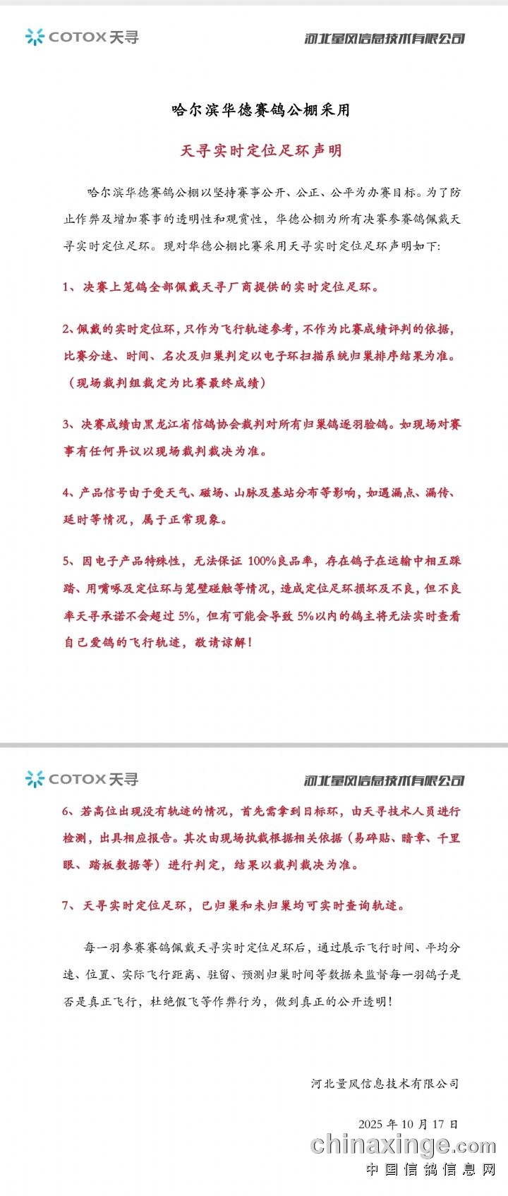 哈尔滨华德秋棚·采用天寻实时定位足环声明