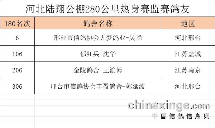 您好!公棚为真实体现落实三公原则。比赛采取裁判组、鸽友代表、信鸽千里眼三方进行监督逐羽扫描、赛鸽入笼、运输、放飞、归巢全部过程。在180公里比赛中荣获第6,106,206,306名会员,入驻监督陆翔公棚280公里热身赛全程。