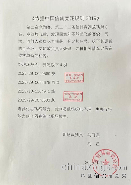 宁夏君翼赛鸽公棚(秋棚)关于200公里开笼伤残鸽情况说明