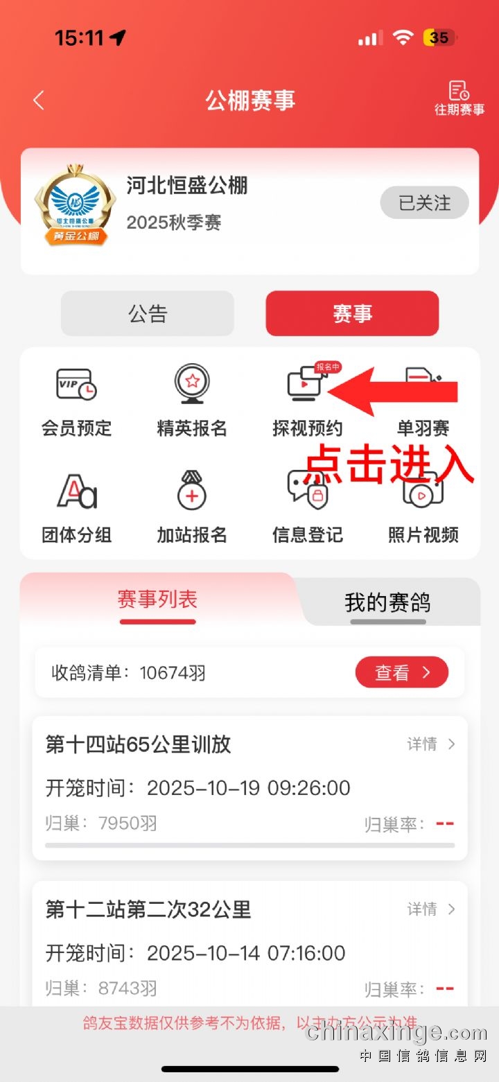 二、现场探视、视频探视和不探视的赛鸽第一关未上笼的爱鸽一律退还参赛费