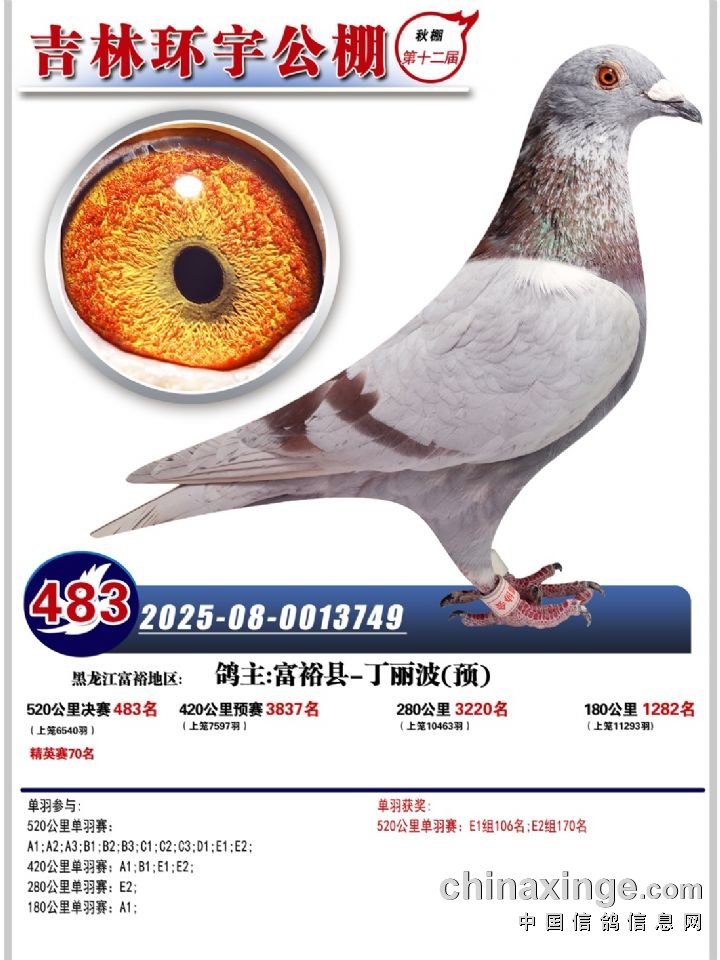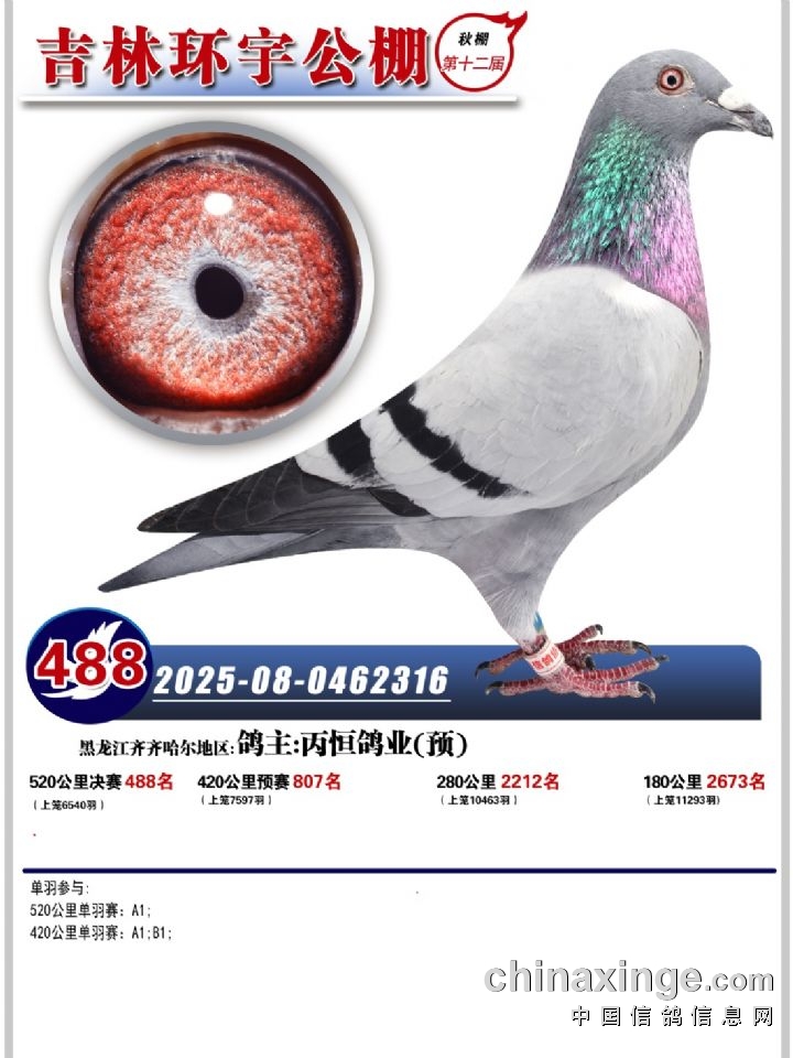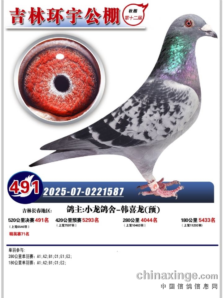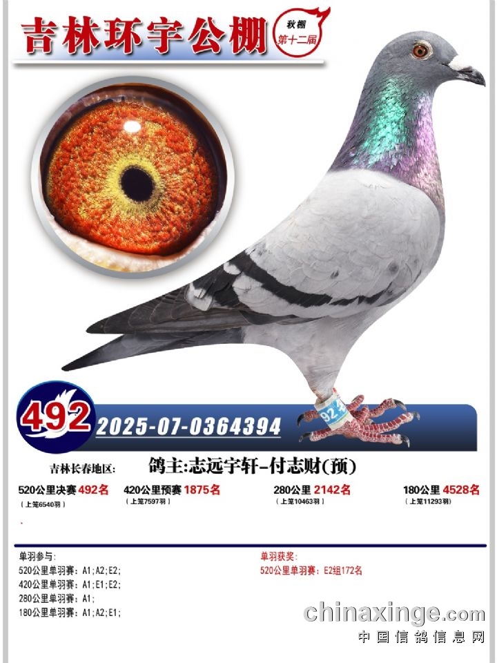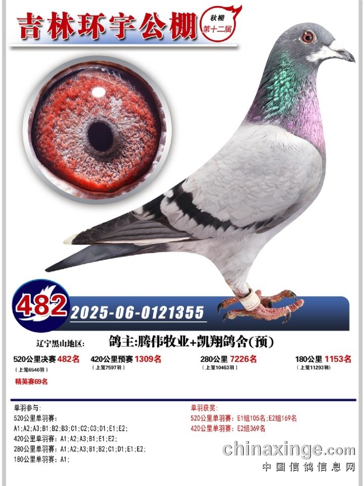 吉林环宇(小)2025年加站赛1-15名获奖鸽照片赏析