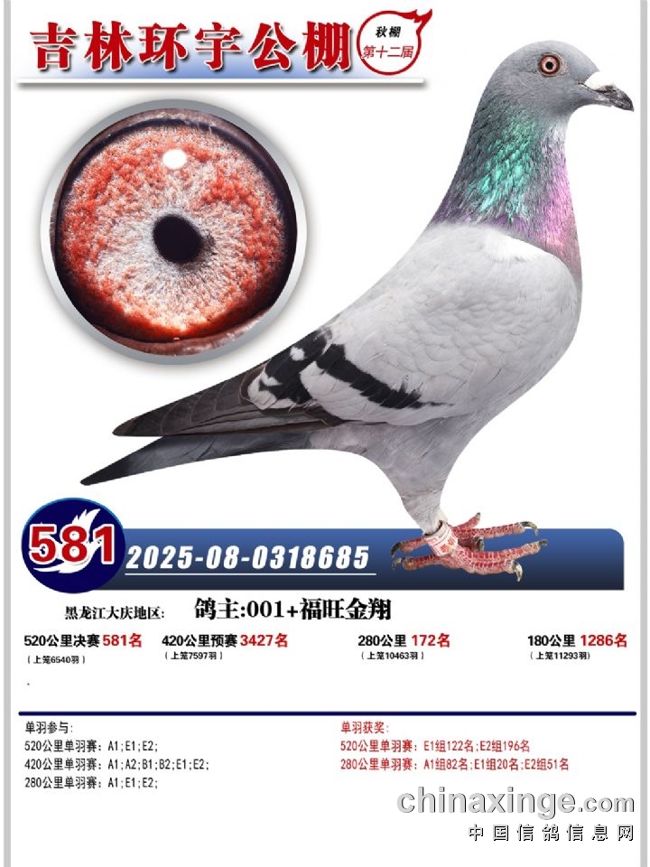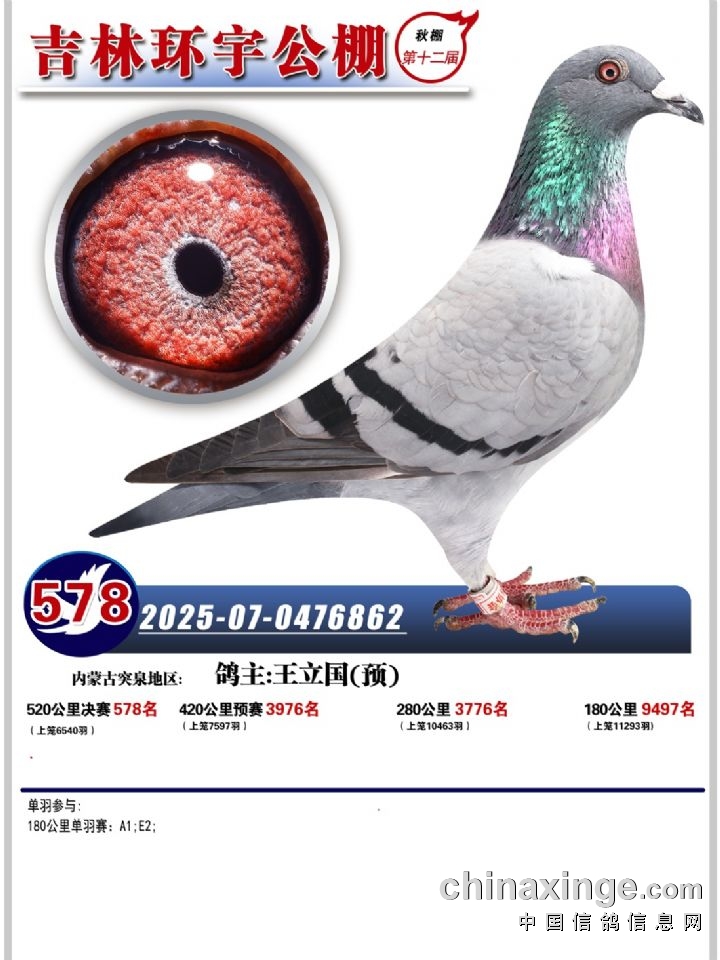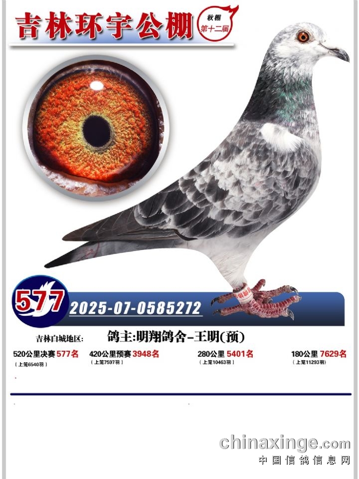 吉林环宇(小)2025年加站赛1-15名获奖鸽照片赏析