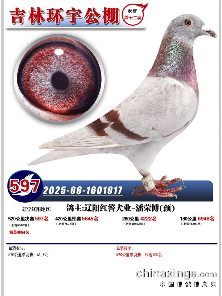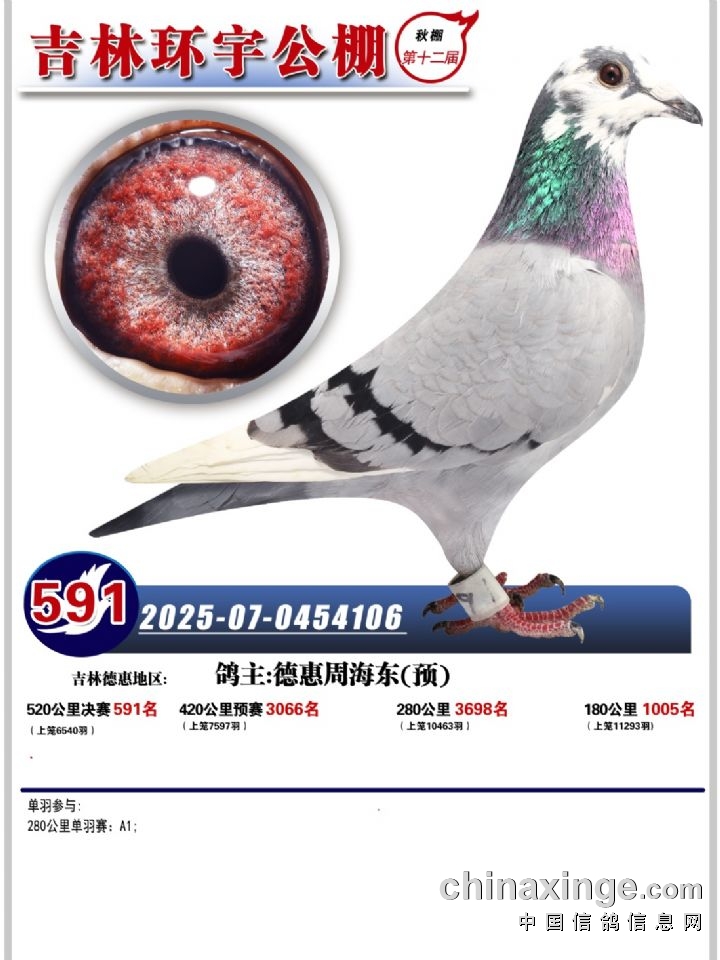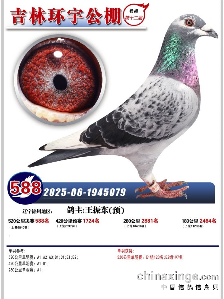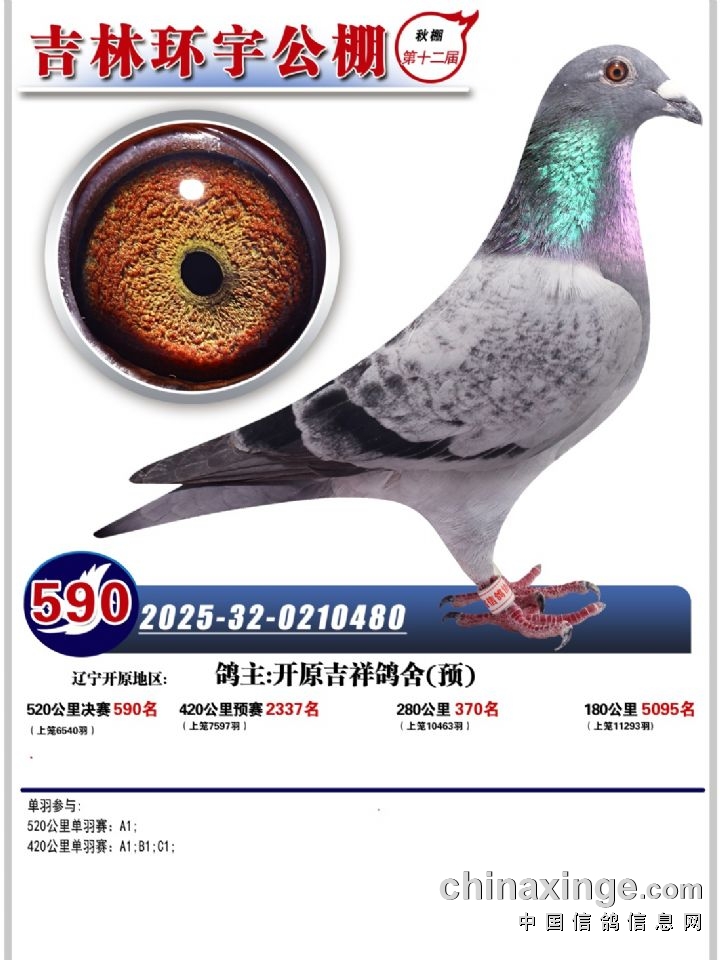 吉林环宇(小)2025年加站赛1-15名获奖鸽照片赏析