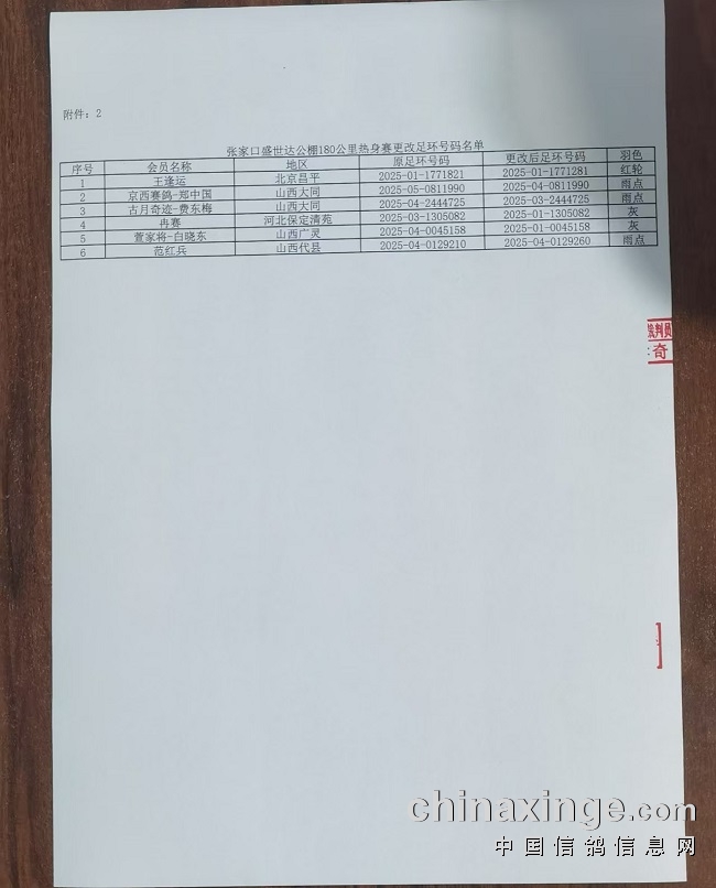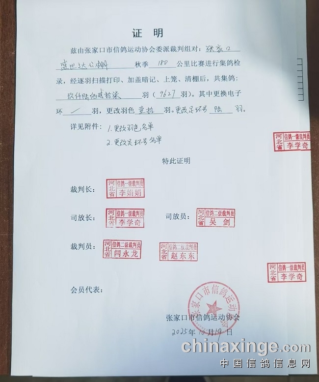 张家口盛世达公棚500公里决赛前900名获奖名单证明
