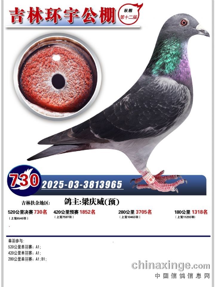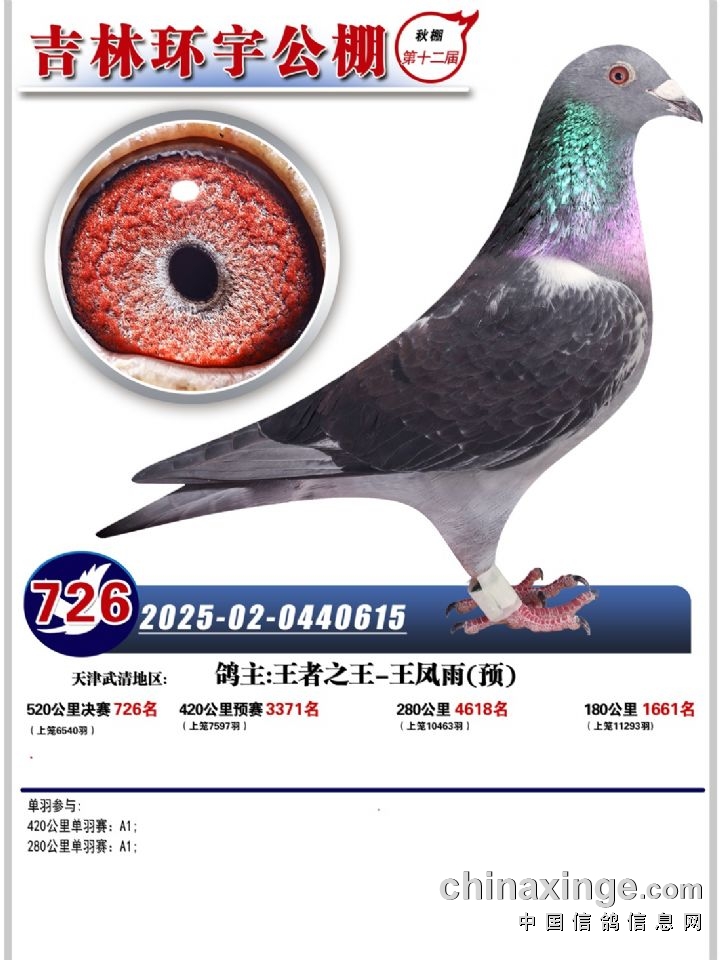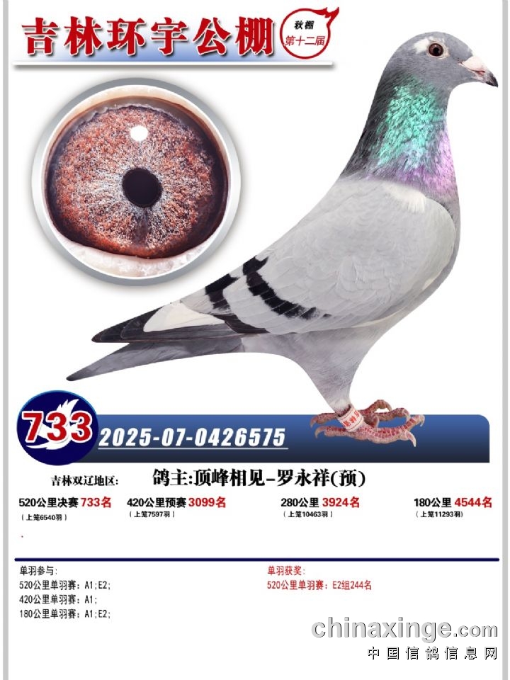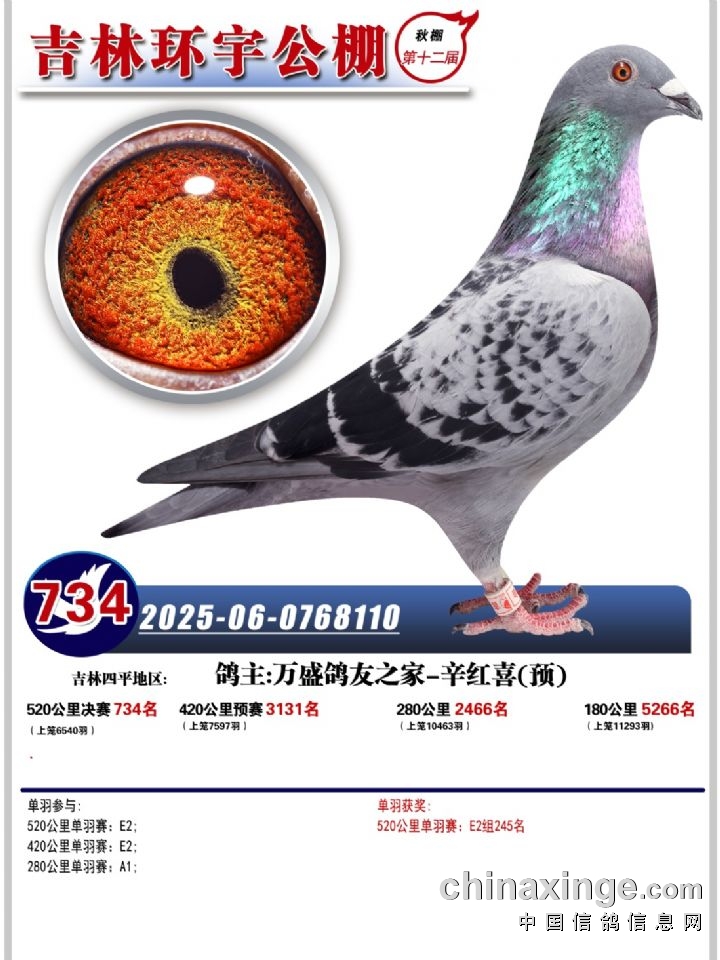 吉林环宇(小)2025年加站赛1-15名获奖鸽照片赏析