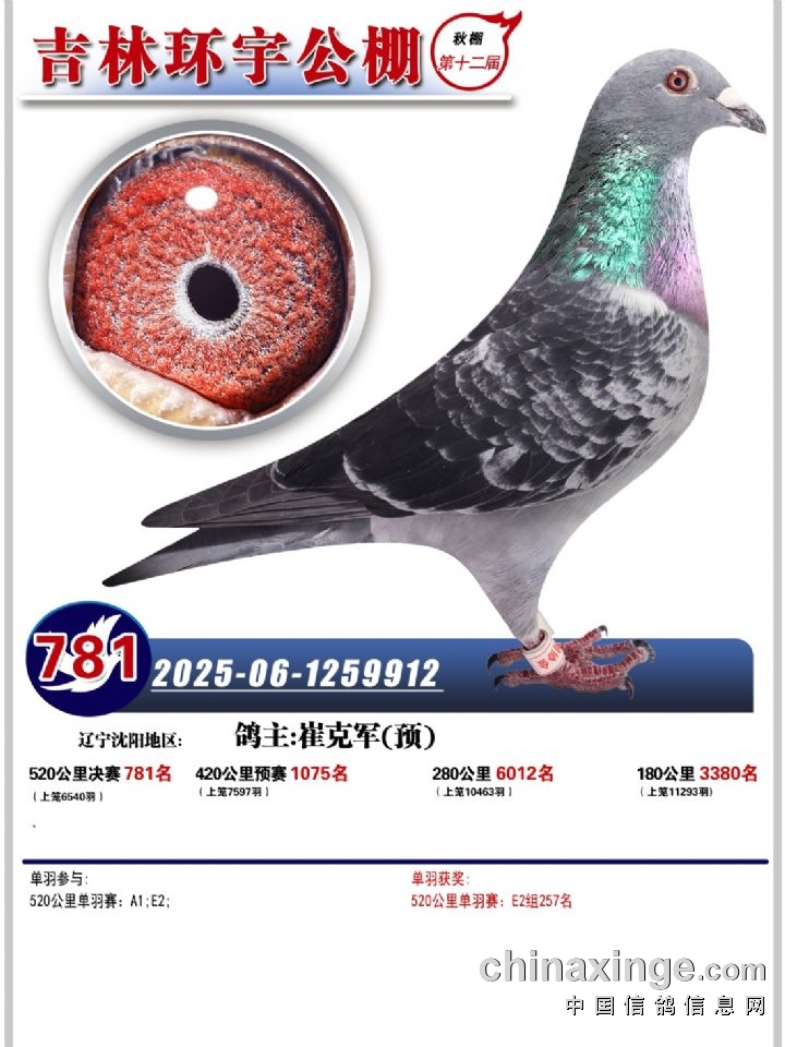 吉林环宇(小)2025年加站赛1-15名获奖鸽照片赏析