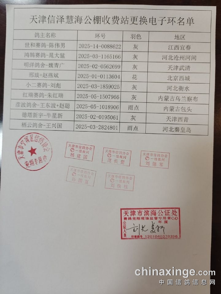 天津信泽慧海公棚180-200公里热身赛更换电子环名单