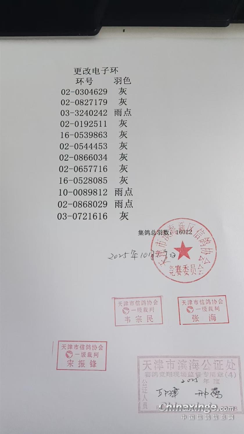 天津市丽翔国际赛鸽公棚更改环号明细