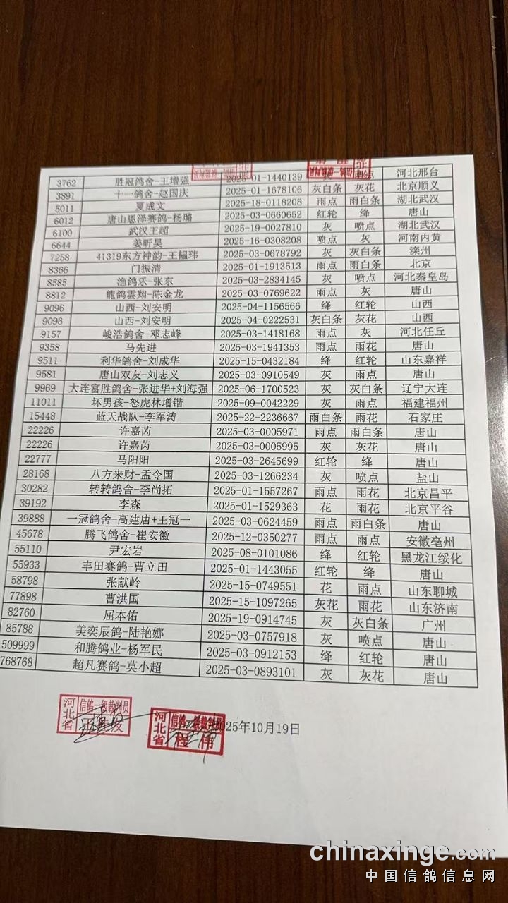 提示:如果此页面是训放清单,要想快速查询鸽环号,请按