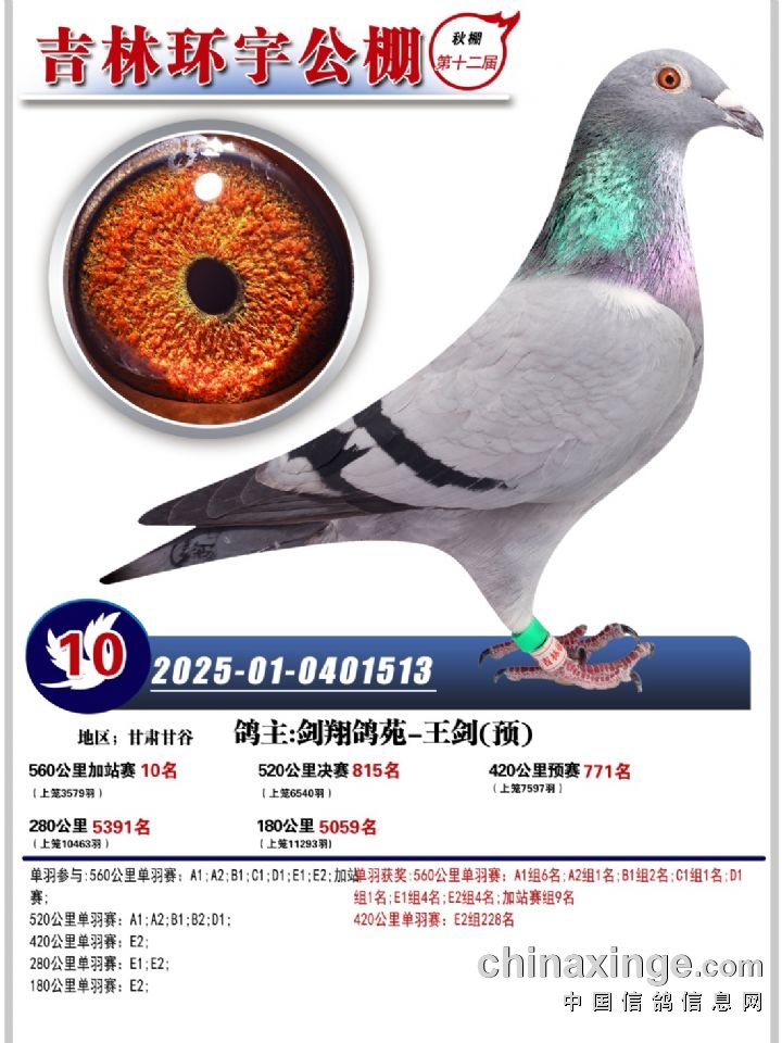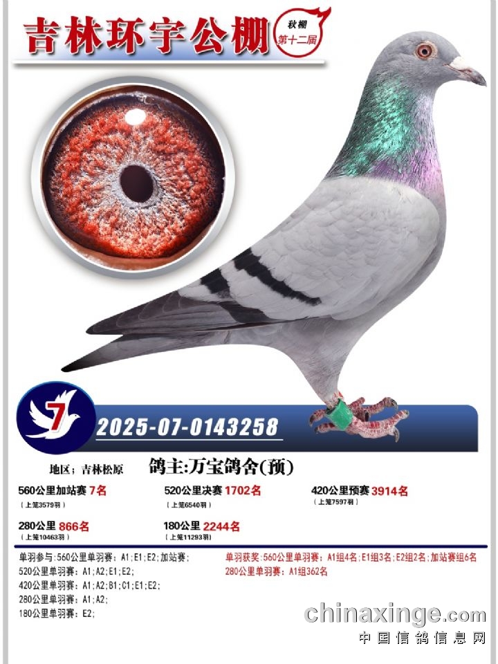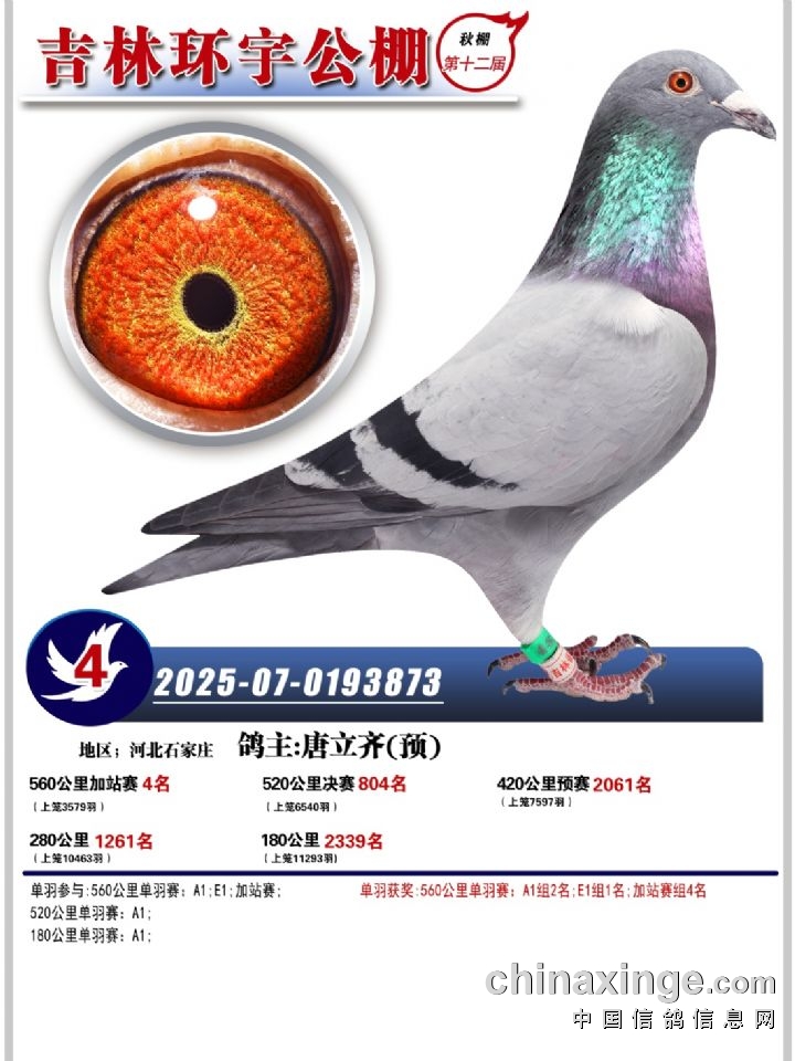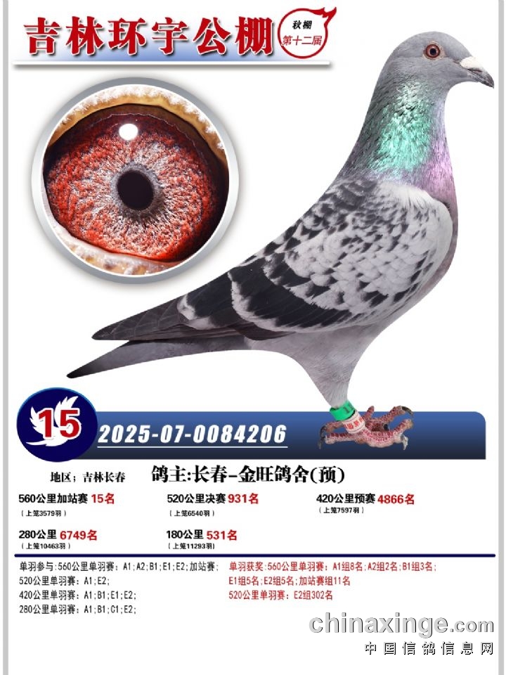 吉林环宇(小)2025年加站赛1-15名获奖鸽照片赏析