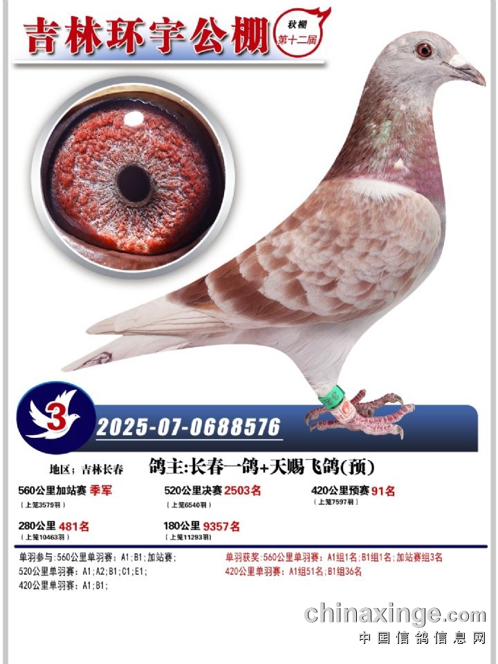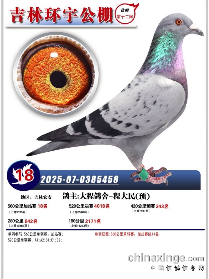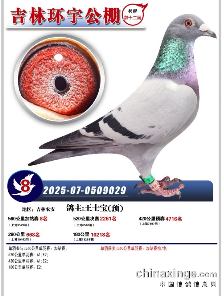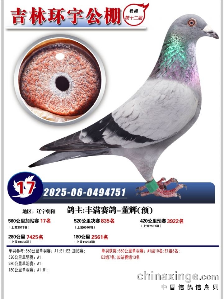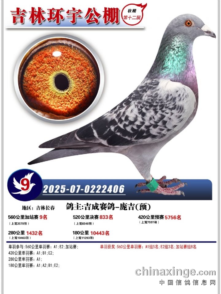 吉林环宇(小)2025年加站赛1-15名获奖鸽照片赏析