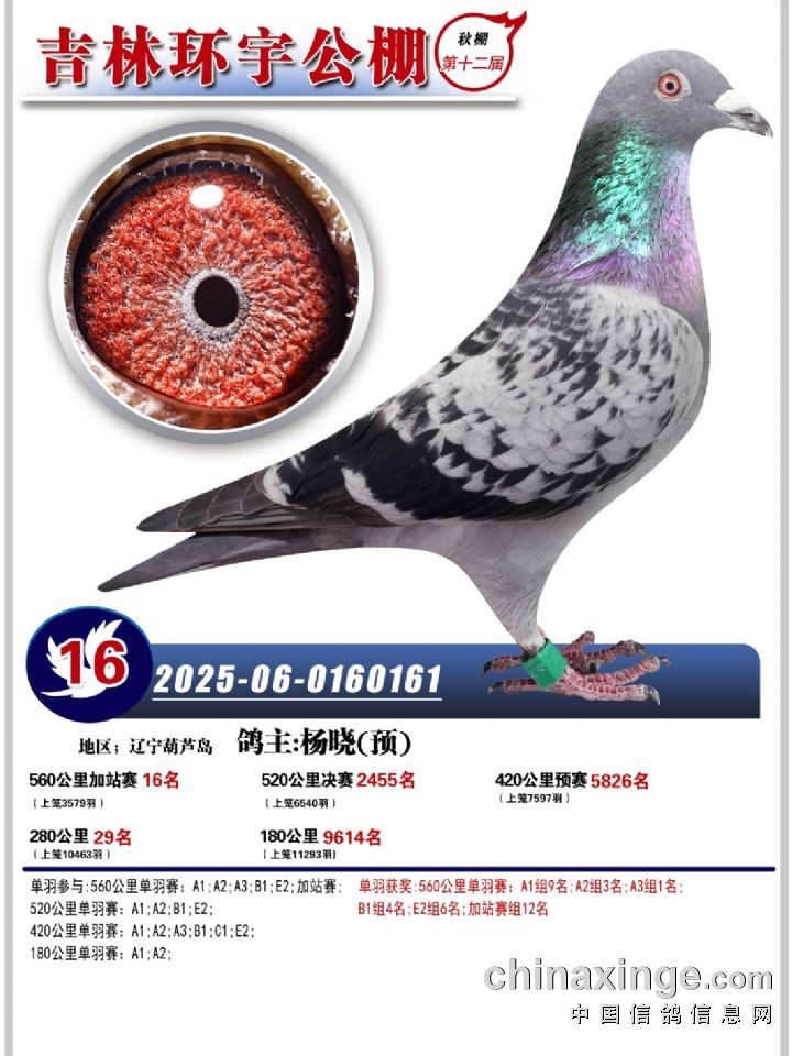 吉林环宇(小)2025年加站赛16-30名获奖鸽照片赏析