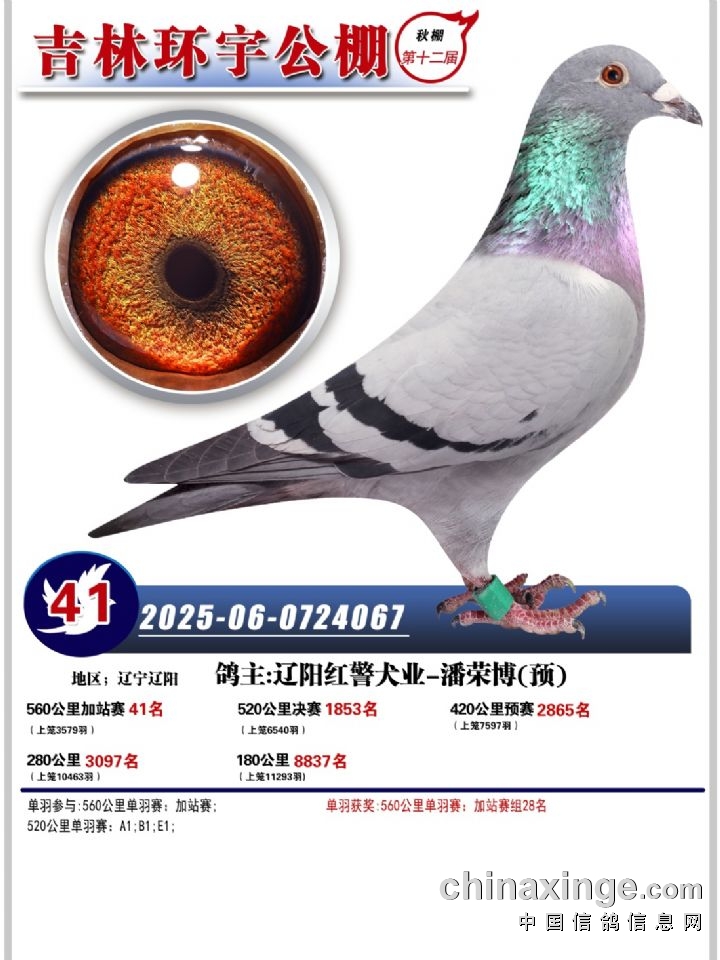 吉林环宇(小)2025年加站赛41-50名获奖鸽照片赏析