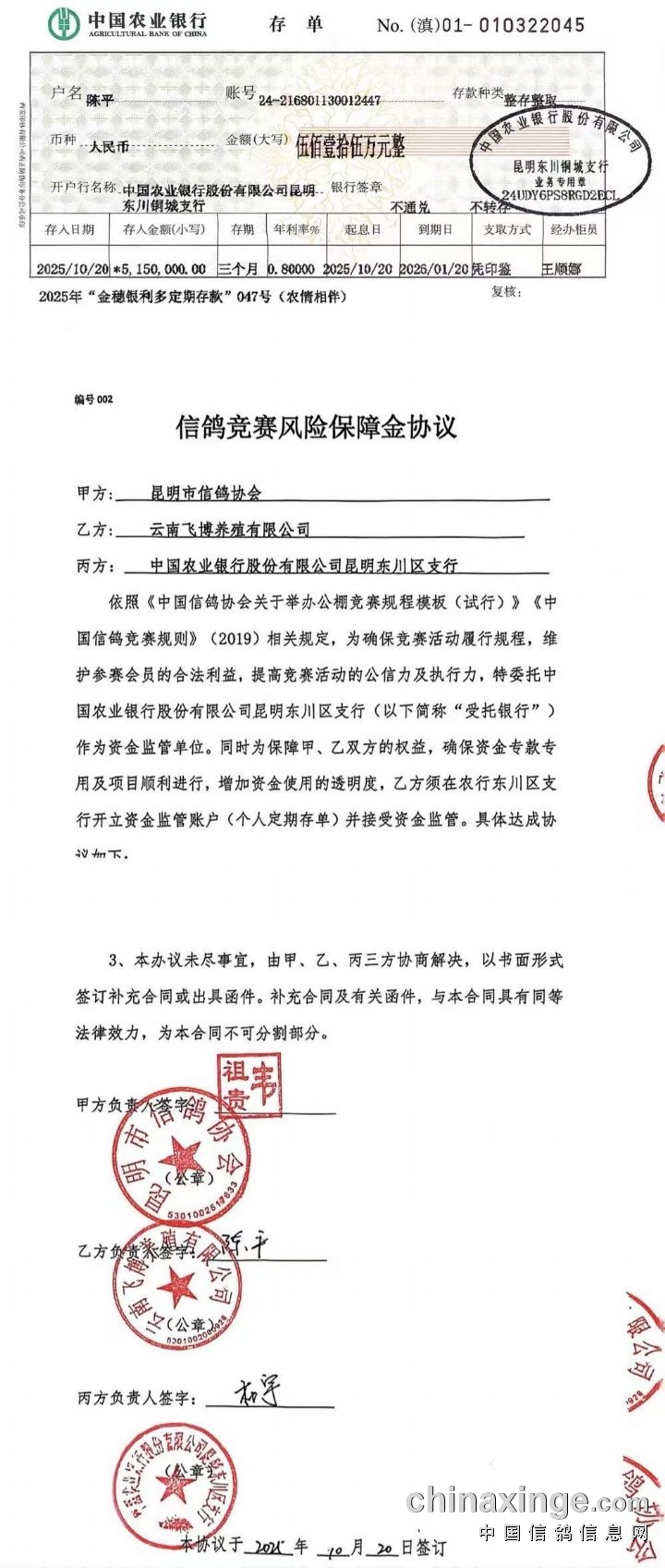 已同昆明市信鸽协会工作人员一起办理资金监管!以下是图文纪实,请大家放心参赛!