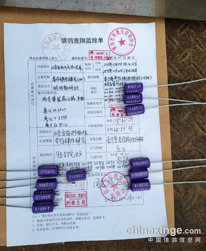 青岛金谷秋棚 热身赛竞翔监放单及司放照片