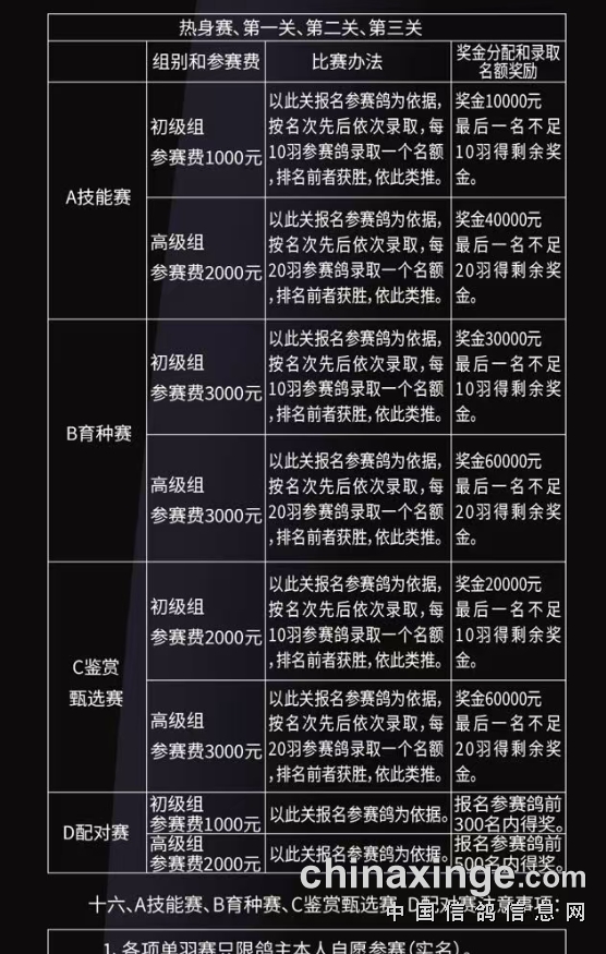 精英赛以及技能赛报名结束时间为集鸽前一天下午17点,集鸽当天不接受任何报名。