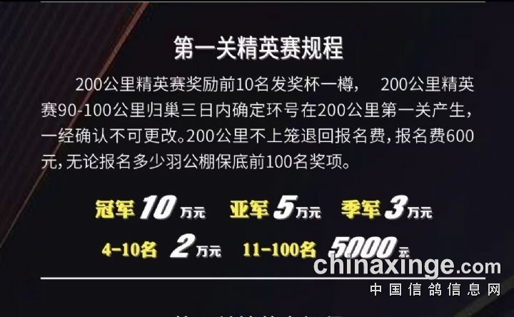 报名羽数超出公棚保底前100名 每超出9羽奖励一个名额5000元