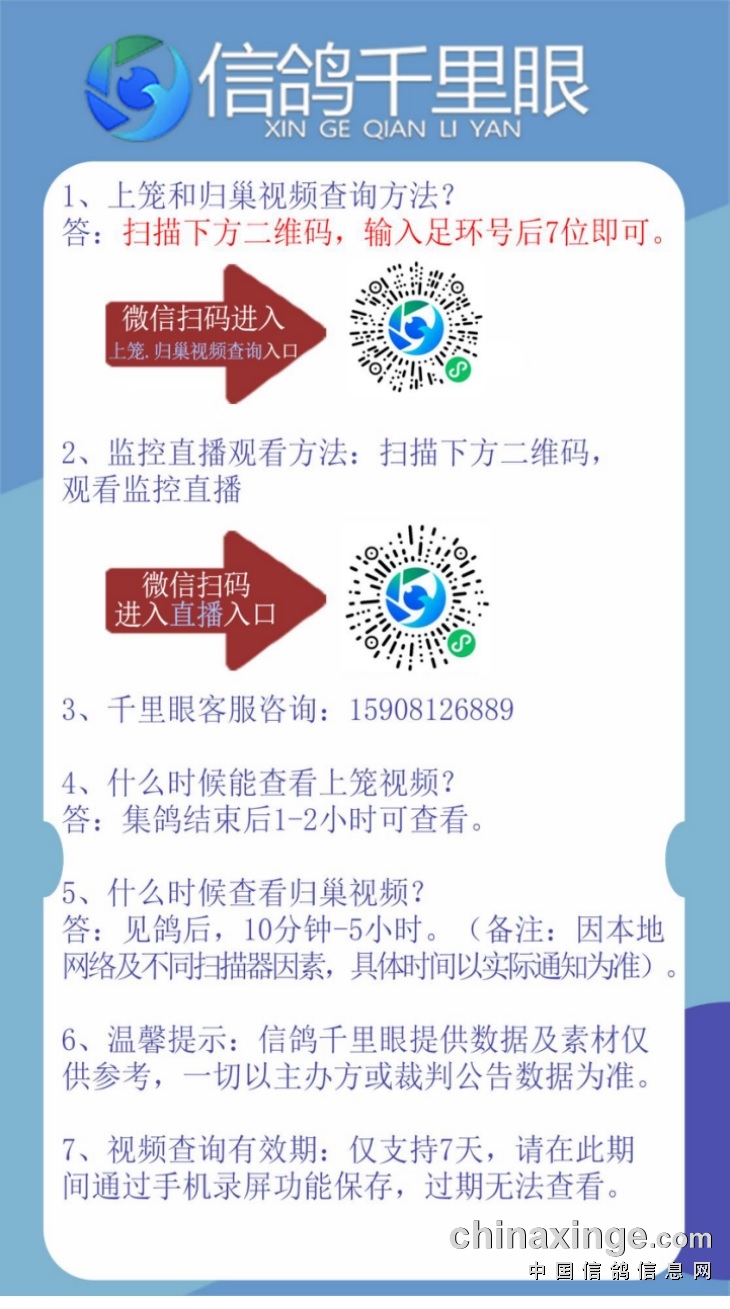 信鸽千里眼视频监控系统(简称信鸽千里眼),是一款服务信鸽赛事的可视化系统,致力于以信鸽赛事透明化服务为基础,让每一羽赛鸽得到应有的尊重,为信鸽赛事公开透明化赋能。信鸽千里眼硬件采用央企海康威视产品线标准生产,云平台基于央企萤石云开放平台开发,二者合一将音视频的直播、录制、存储、分析等能力在信鸽领域进行投入使用。
