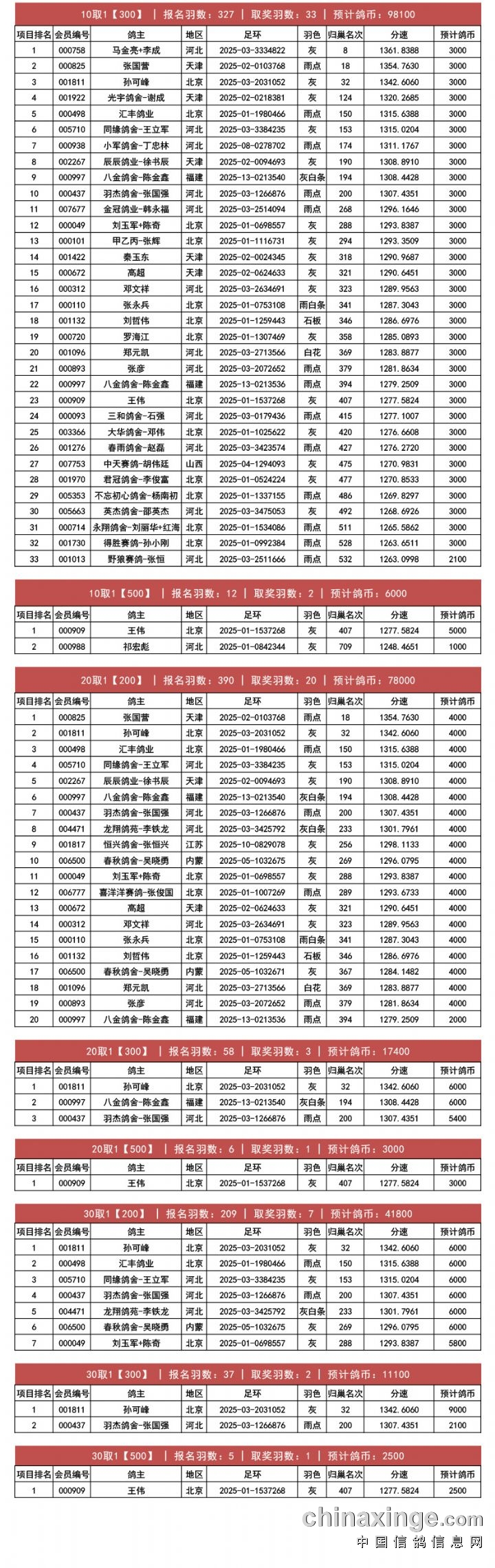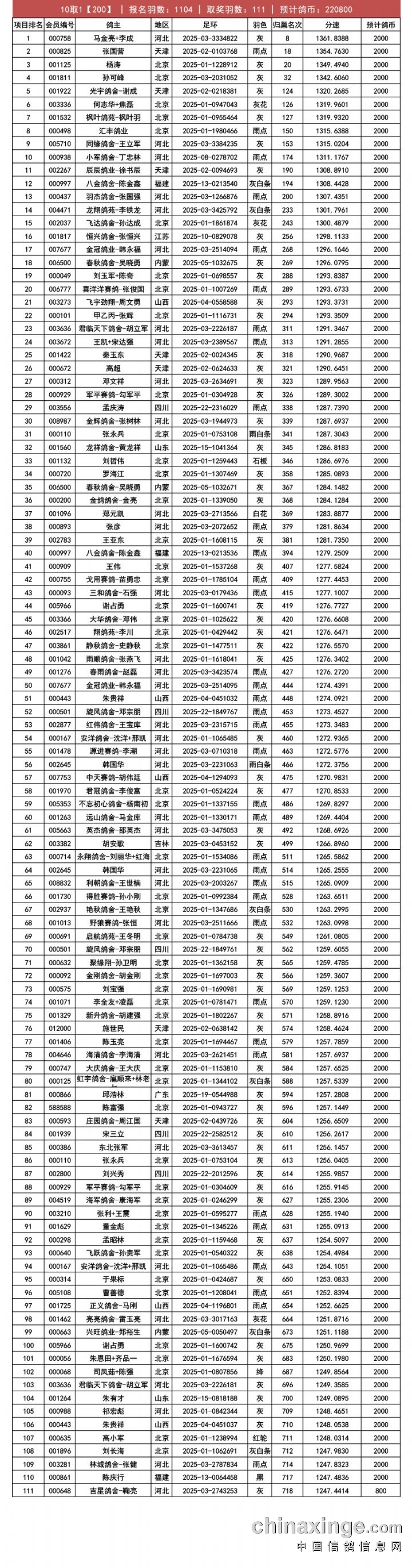• 晟达赛鸽公棚——决赛1-1000名获奖鸽名单 (2025-11-11 22:09:24)