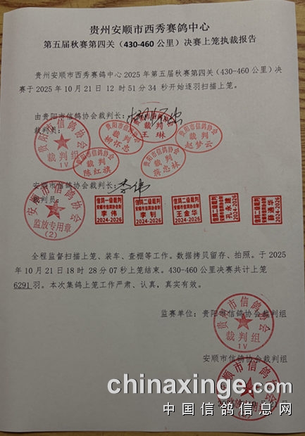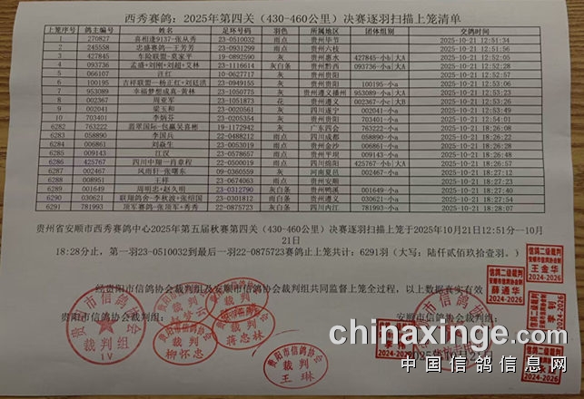 西秀赛鸽:第四关(430-460)公里决赛逐羽扫描上笼名单