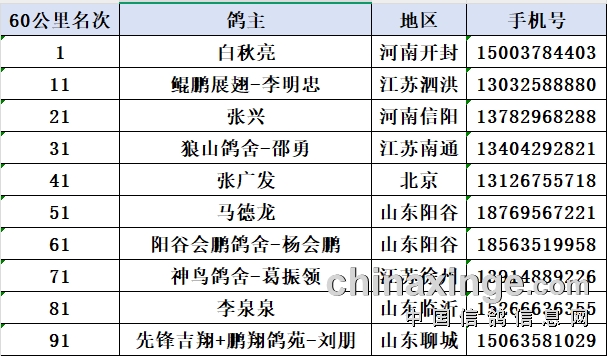温馨提示:此次训放开通归巢短信,如有赛鸽归巢但未收到短信的会员请及时与公棚联系核对电话号码。