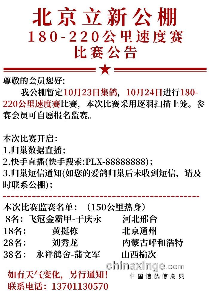 北京立新公棚500公里决赛3日归巢数据(按时间)