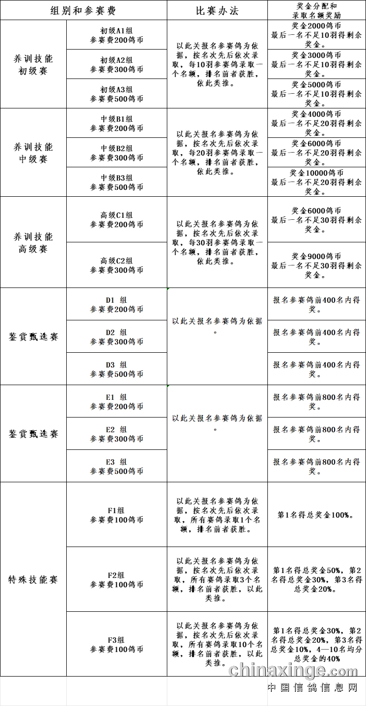 3、养训技能赛未上笼赛鸽退还报名费。