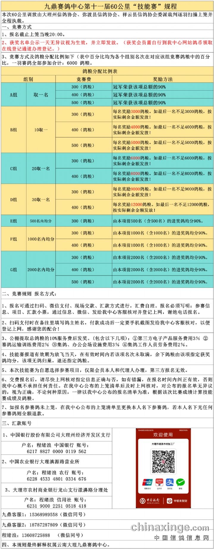 九鼎赛鸽中心查棚收费及追加赛报名清单