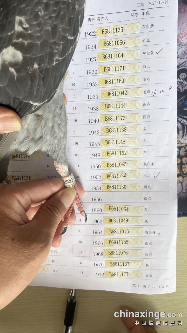 寄养人 周才兴徐鑫李军+马满胜 足环号 1952