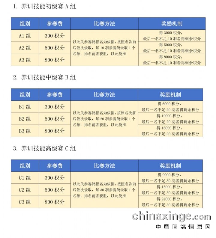3、养训技能赛只限鸽主本人,自愿参赛。