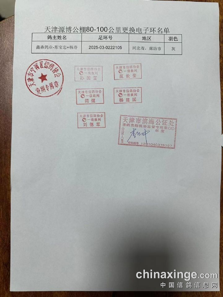 天津源博公棚2025年决赛前700名获奖鸽照片