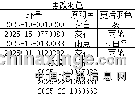山东冠霖赛鸽公棚更改羽色电子环清单