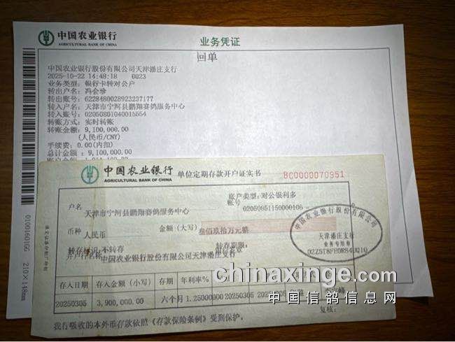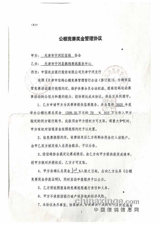 天津鹏翔公棚总奖金已全额存入第三方监管账户