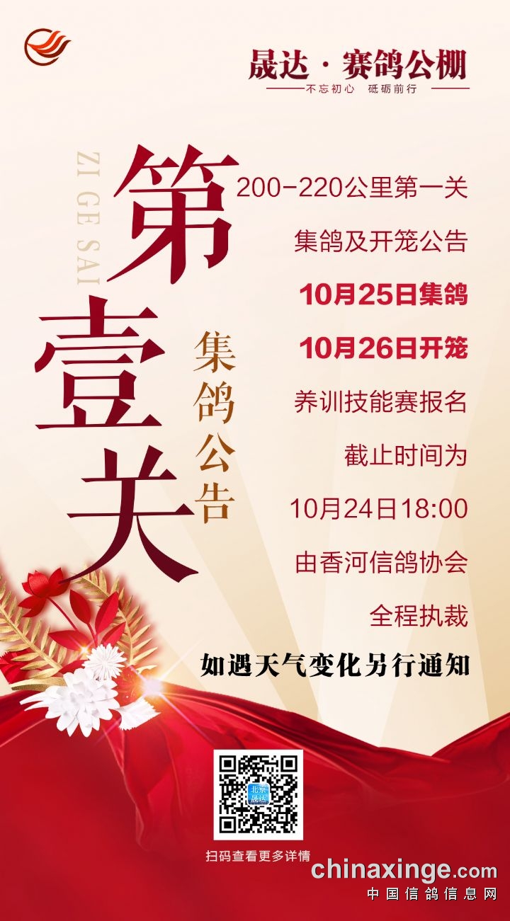 晟达赛鸽公棚——第一关200-220公里集鸽公告