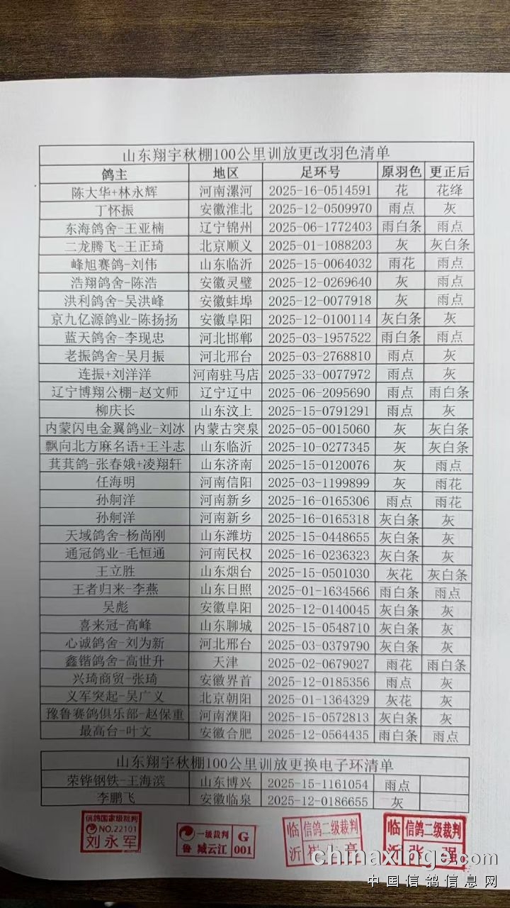 山东翔宇秋棚2025年三关鸽王获奖名单