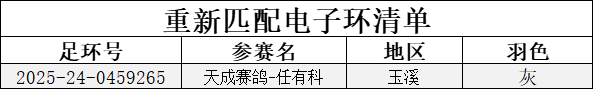 勝利飞翔公棚 60公里逐羽扫描重新匹配电子环清单