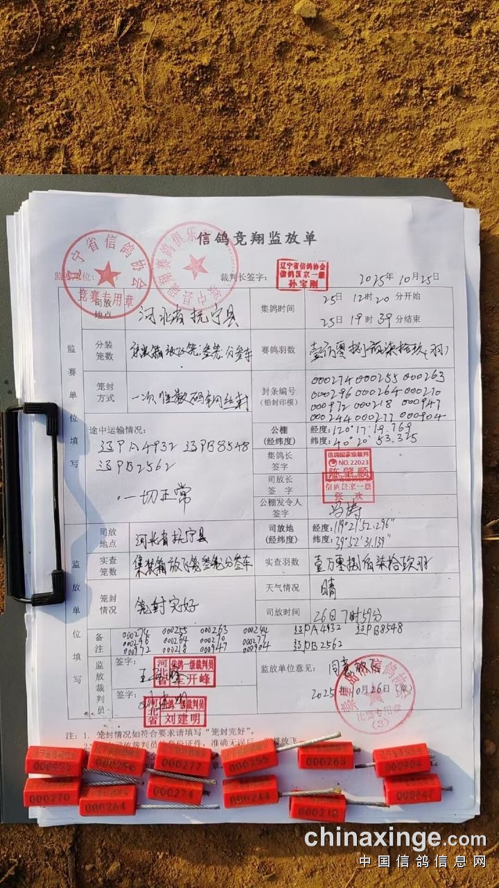时间安排:10月25日集鸽,10月26日7:59分开笼。