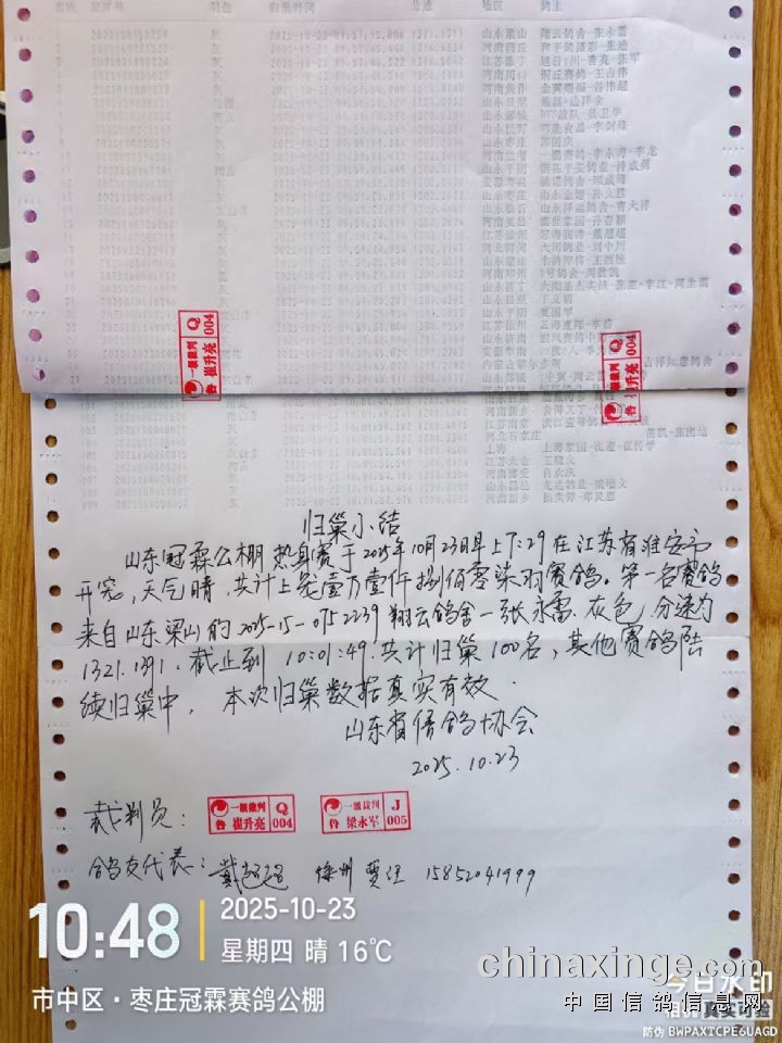 山东冠霖赛鸽公棚双关加站赛获奖鸽照片