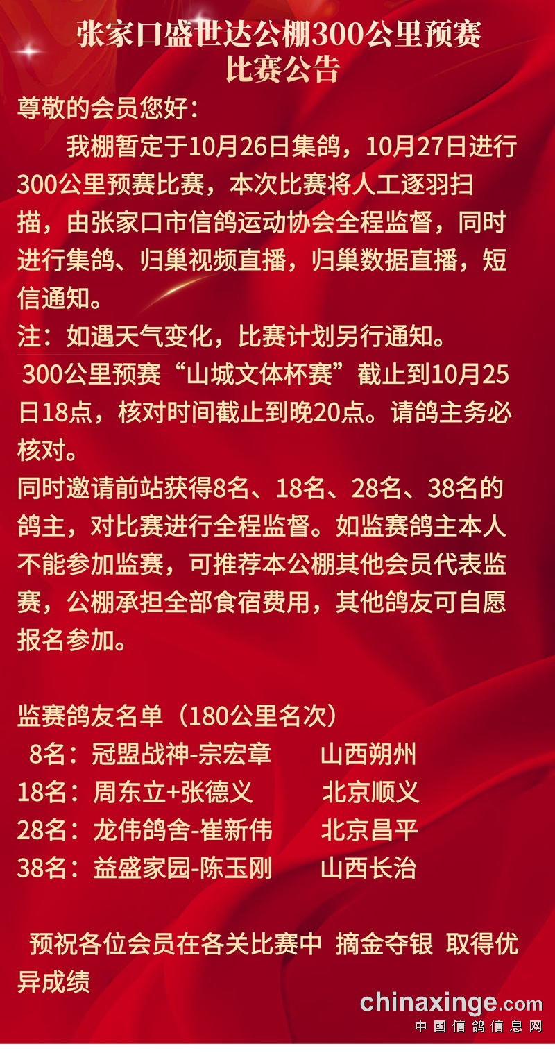 张家口盛世达公棚300公里预赛比赛公告